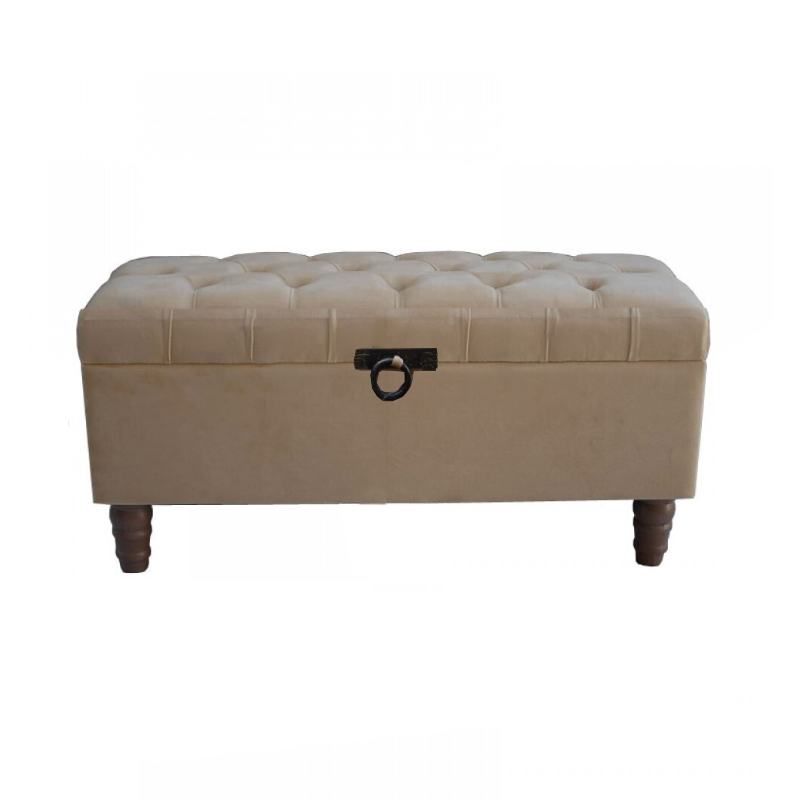 Σκαμπό σαλονιού με αποθηκευτικό χώρο, ξύλινο σε μπεζ απόχρωση, διαστάσεων 101x42x48εκ. Πρακτικό και κομψό έπιπλο που συνδυάζει λειτουργικότητα και αισθητική. Ιδανικό για σαλόνι ή υπνοδωμάτιο, προσφέρει άνεση στο κάθισμα και επιπλέον χώρο για αποθήκευση αντικειμένων.