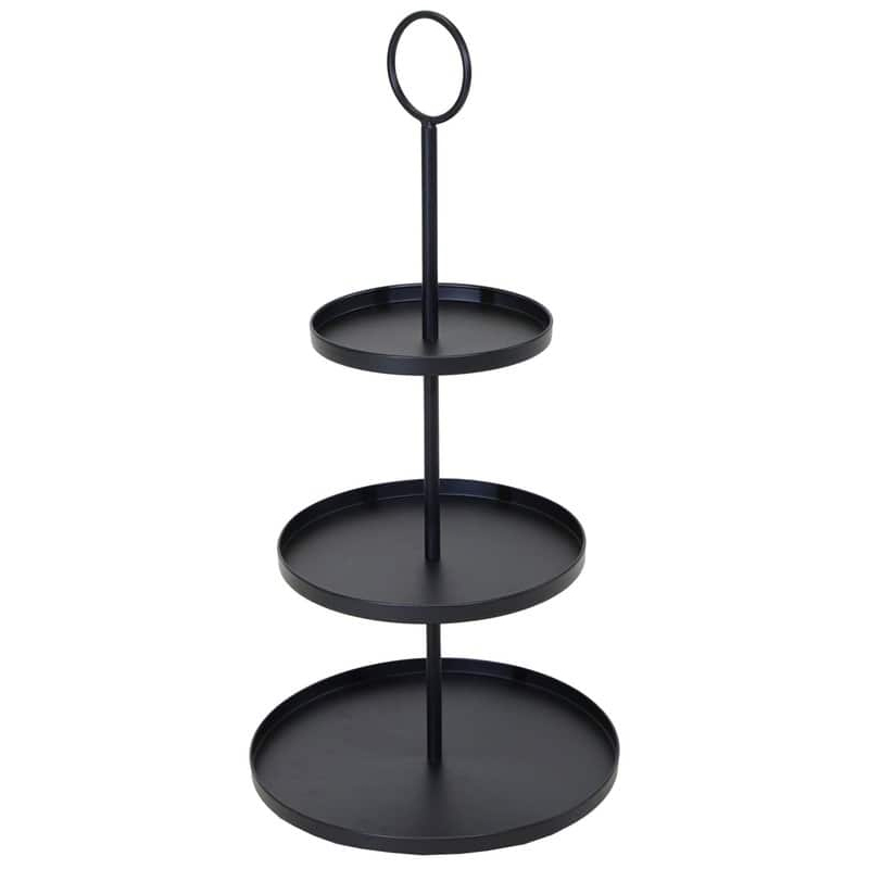 Τριώροφο μεταλλικό σταντ σε μαύρο χρώμα, διάμετρος Φ40εκ και ύψος 83εκ. Ιδανικό για οργάνωση και διακόσμηση σε σαλόνι, κουζίνα ή κατάστημα.