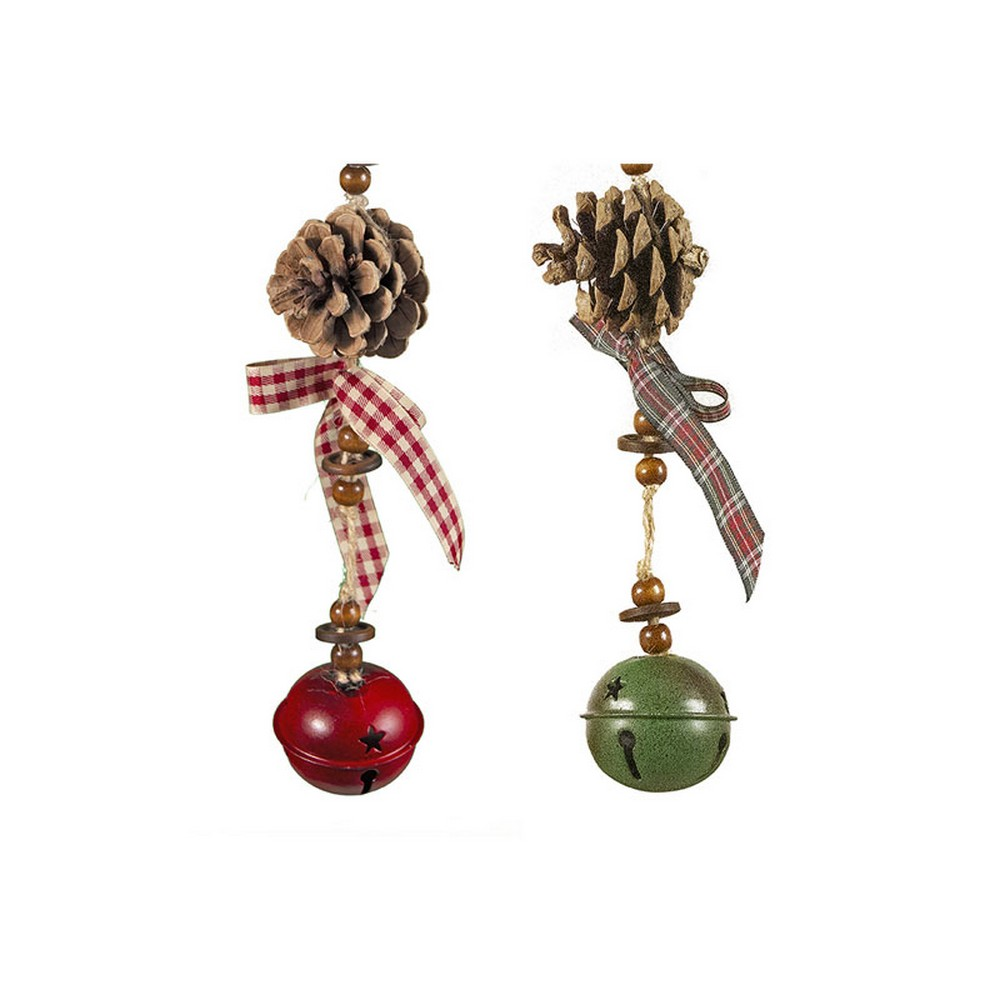 Στολίδι καρώ κορδέλα & καμπάνα πράσινο/κοκκινο,30cm
