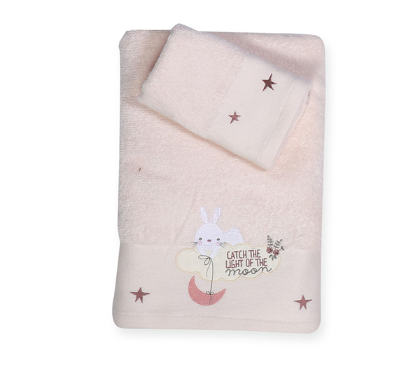 Βρεφικές πετσέτες σετ 2 τεμαχίων με κέντημα, από 100% βαμβάκι. Το σετ περιλαμβάνει μία πετσέτα χεριών διάστασης 30x50cm και μία μπάνιου διάστασης 70x140cm.