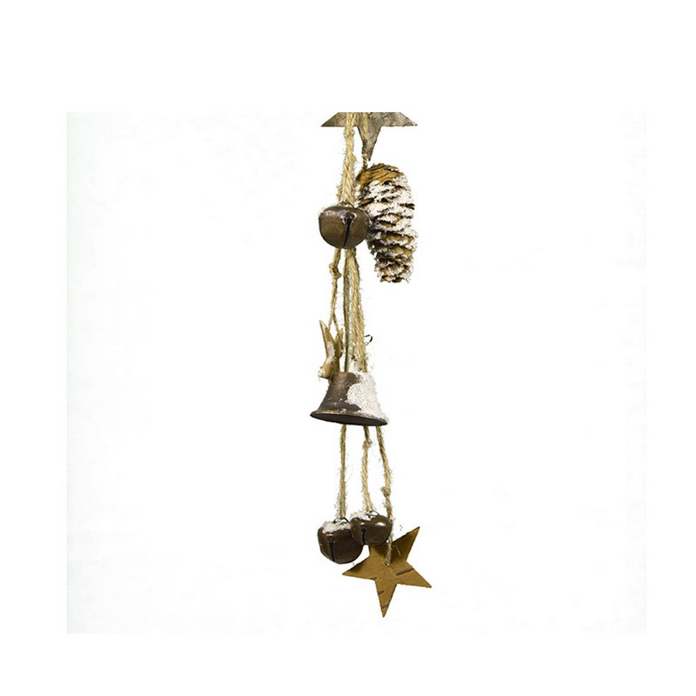 Γιρλάντα με χιονισμένα κουκουνάρια & ξύλινα αστέρια, 53cm