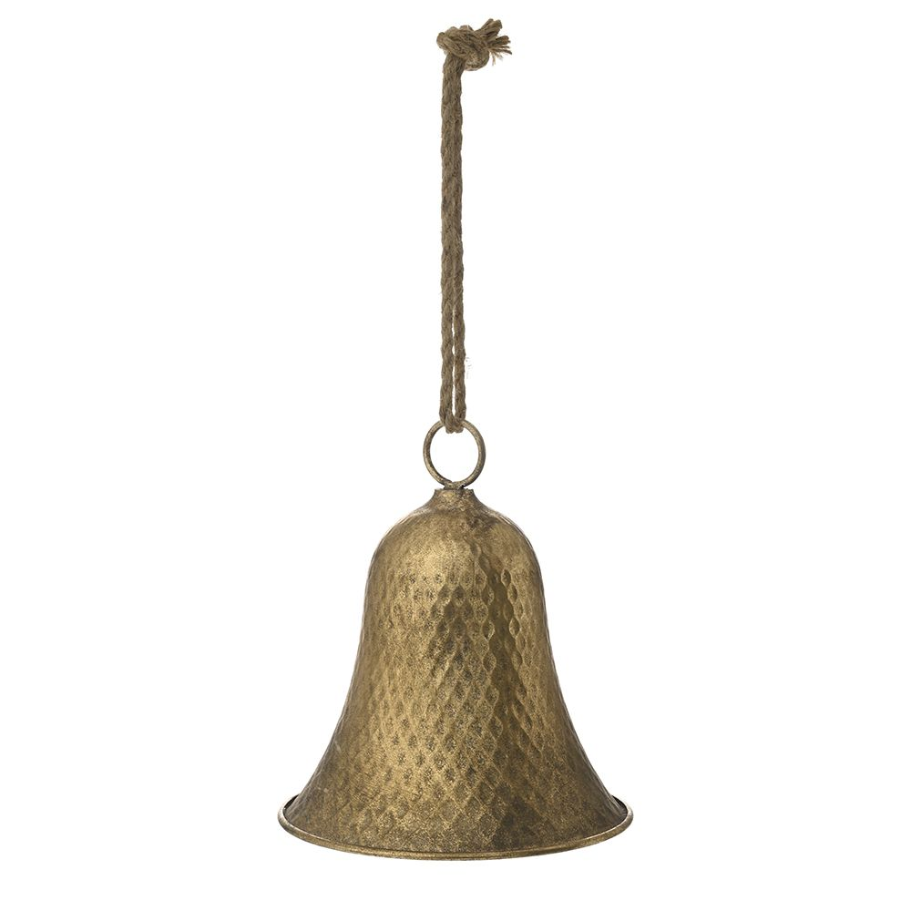 Χρυσή μεταλλική καμπάνα (Φ21x25 εκ.) – εντυπωσιακή χριστουγεννιάτικη διακόσμηση που προσφέρει λάμψη και πολυτέλεια στον χώρο σας. Ιδανική για το γιορτινό στολισμό.