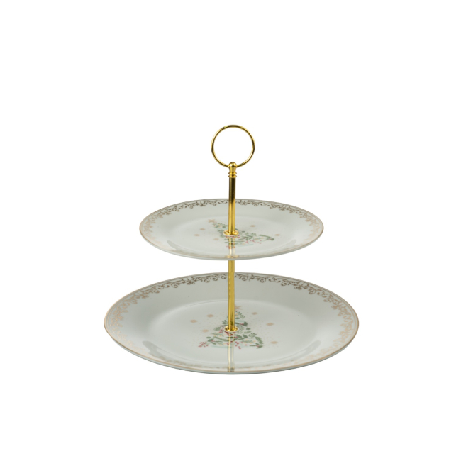 Σετ από δύο χριστουγεννιάτικα πιάτα πορσελάνης, ιδανικά για να αναδείξετε το γιορτινό σας τραπέζι. Με σχέδιο χριστουγεννιάτικο δέντρο και τοποθετημένα σε κομψό μεταλλικό σταντ σε χρυσό χρώμα, αυτά τα πιάτα συνδυάζουν πρακτικότητα και αισθητική. Τέλεια επιλογή για γιορτινές περιστάσεις ή για δώρο που θα εντυπωσιάσει.