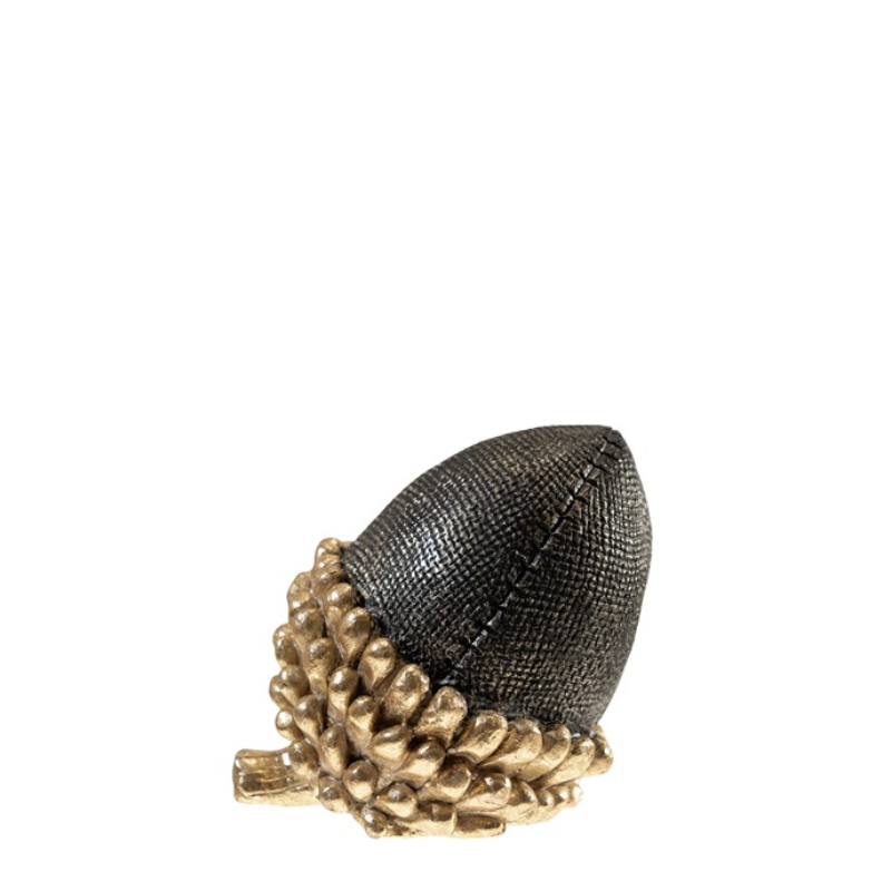 Χριστουγεννιάτικο διακοσμητικό βελανίδι από πολυεστέρα, μαύρο με χρυσές λεπτομέρειες, διαστάσεων 14x11,5x12,5εκ. Ιδανικό για γιορτινές συνθέσεις και κομψή διακόσμηση τραπεζιού ή ραφιού.